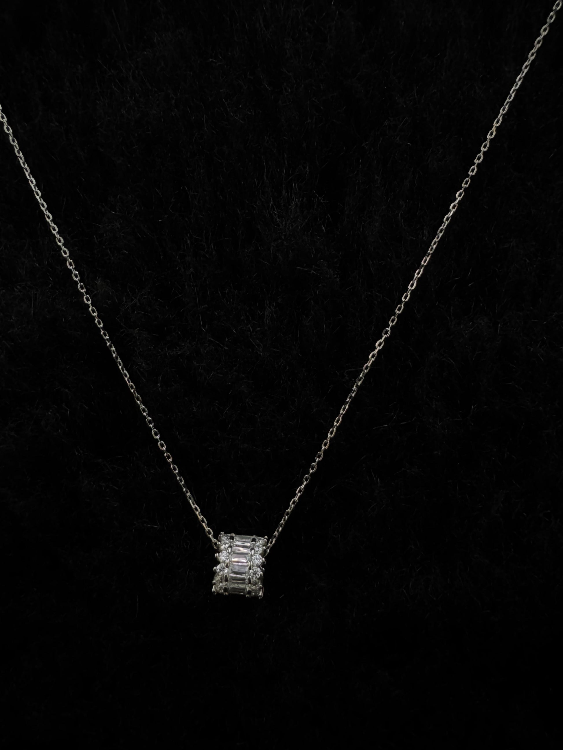 - Pendant Design: Features a rectangular baguette-cut stone arrangement, exuding elegance and sophistication.